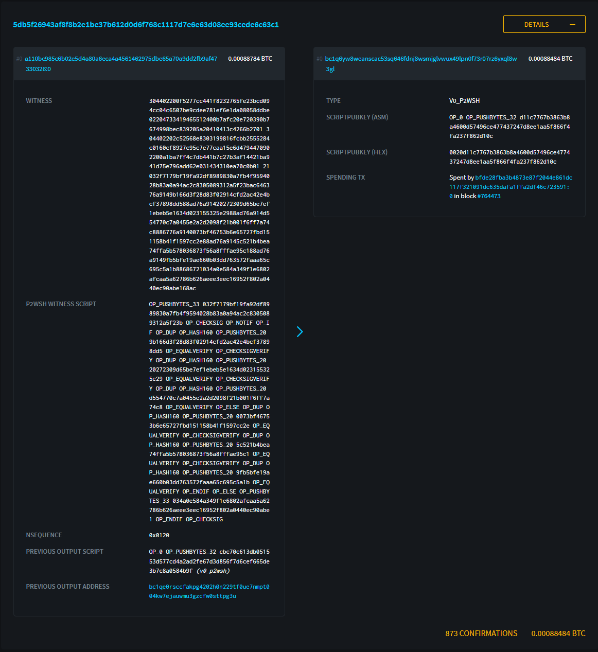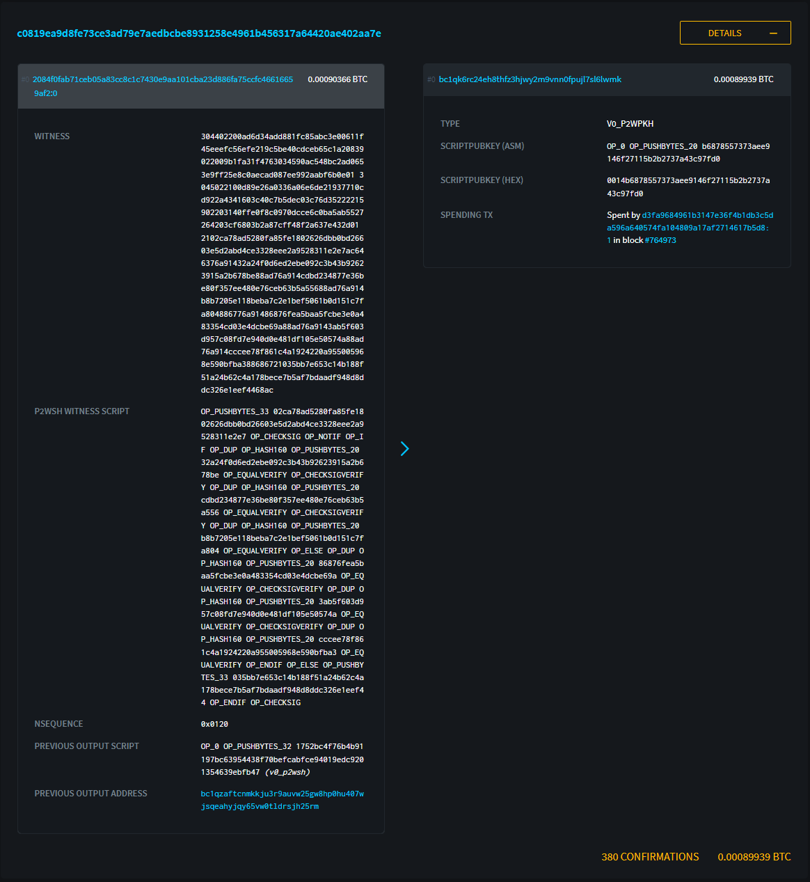 以下はBufferトランザクションです。1 in 1 outのシンプルなトランザクションだとわかります。