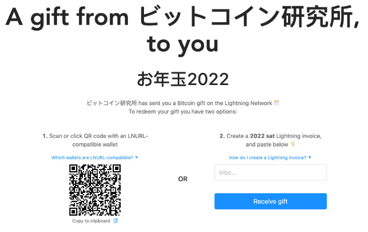 そこで、今年はやり方を変え、普及の進んだLightning Address或いはLightning Giftsを使ってsatsをお届けします!