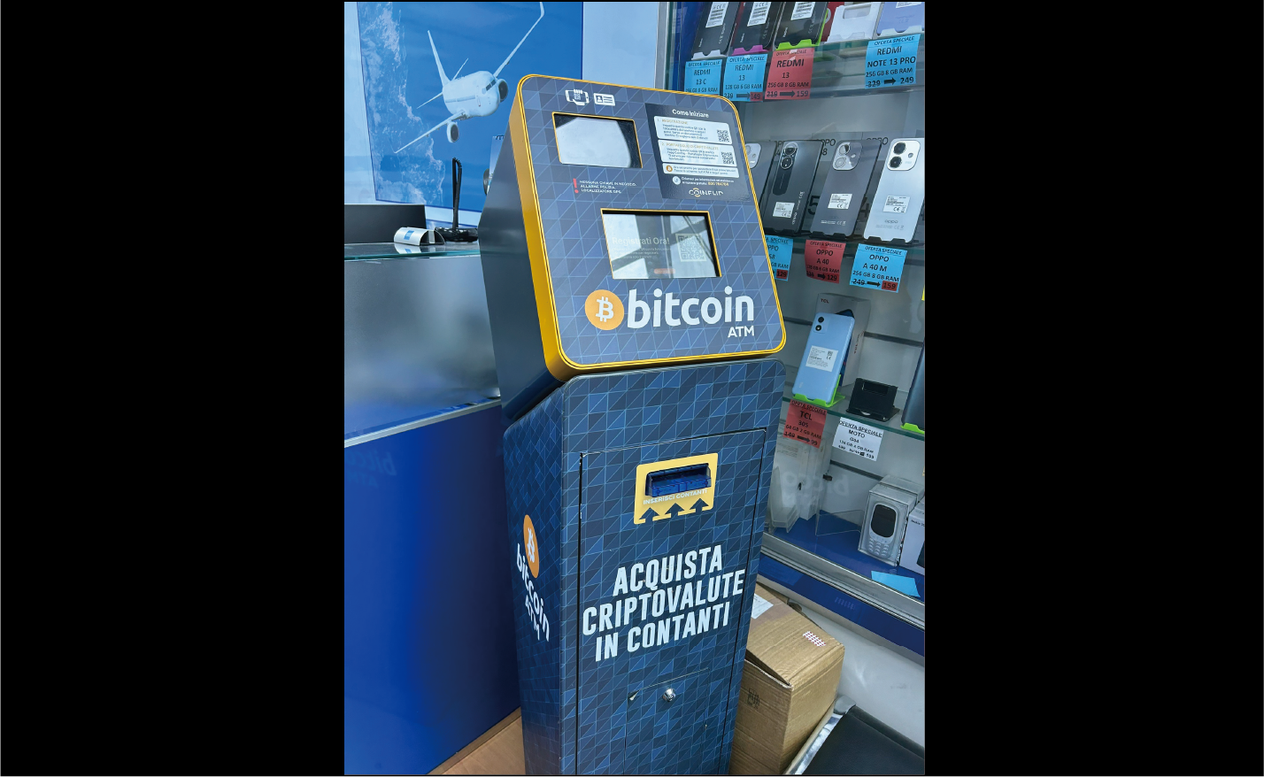 出発地点であるテルミニ駅のすぐ前の旅行代理店にもCoinFlip Bitcoin ATMというビットコインATMがありました。使い方が分からずATMの前でまごついていると店員の方にずっと見られて気まずかったので、スマホを買いに来た客のフリに切り替えて店を出ました。