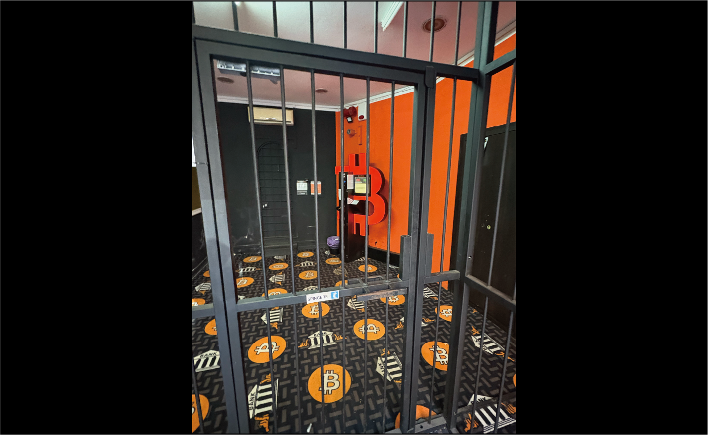 店に入ると目の前に格子があり、格子の奥にビットコインATMがありました。おそらくセキュリティの観点から、店内には基本的に1組しか入れないようにしているのだと思います。格子のドアはロックされて開かず、格子につけられたボタンを押すと洋画の刑務所シーンでよく聞くビープ音と共に格子扉が開きました。