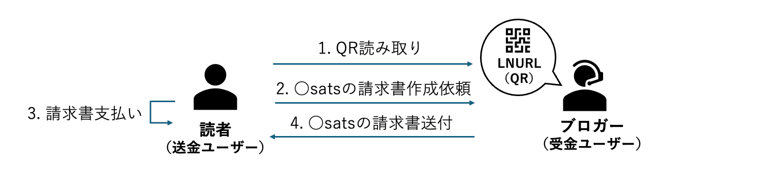 では、これまで説明してきたLNURLの仕組みの要素を整理し、読者がブロガーのLightning Addressに対して送金を行う処理の手順を解説します。