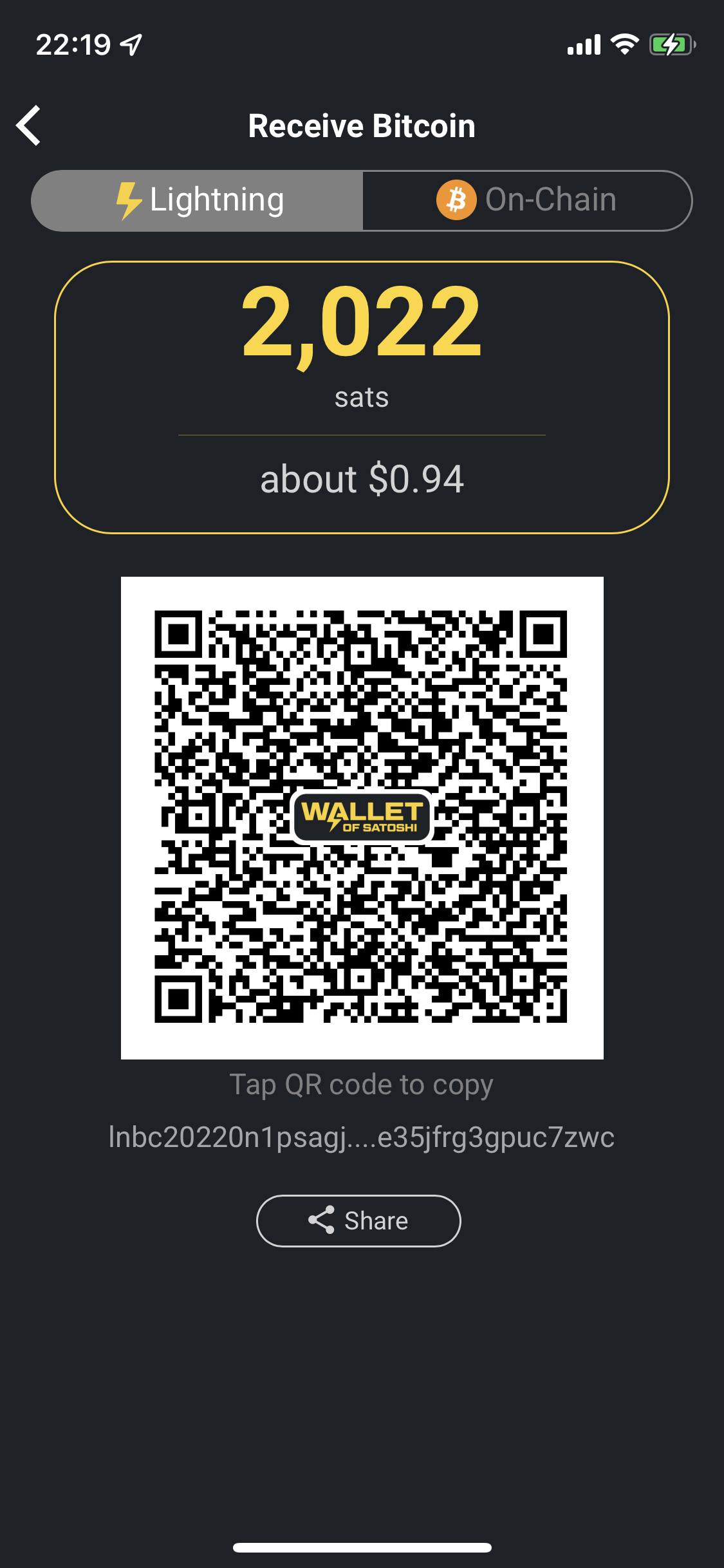 アンケートにお答え頂くことと引き換えに、ビットコイン2022satsをライトニングで受け取れます!