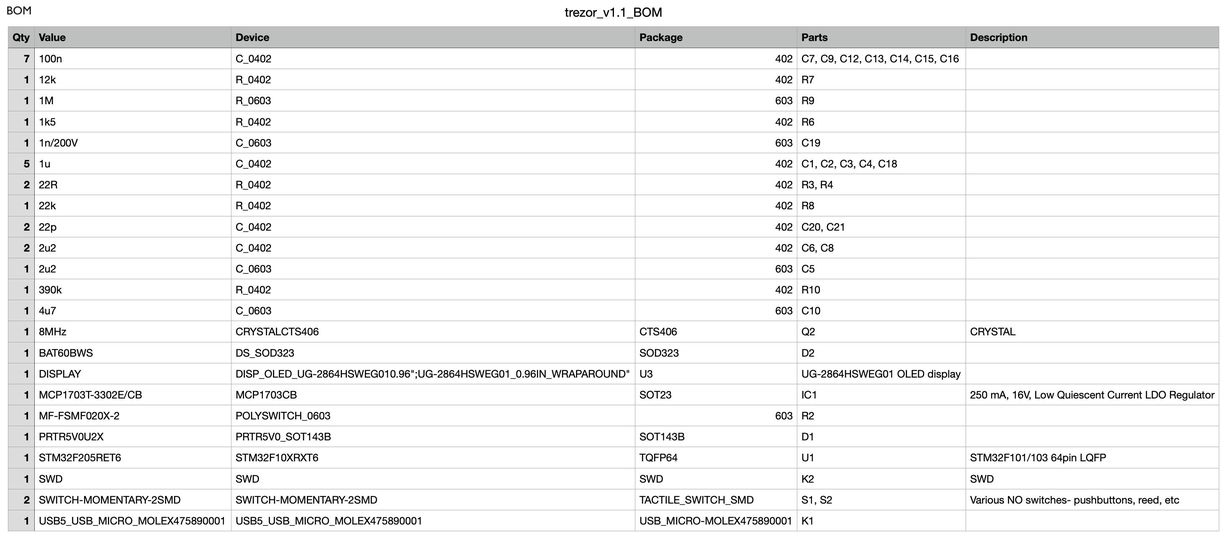 Trezorのハードウェアに関する情報はGitHub(https://github.com/trezor/trezor-hardware)に公開されています。回路図だけでなく,電子回路基板の設計図や部品リストそして外装の形状まで公開されていますのでその気になれば,自分オリジナルのTrezorのクローンを作ることもできてしまいます。